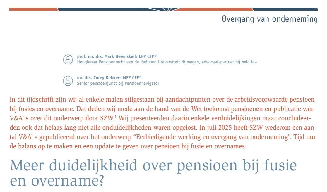 Publicatie: ‘Meer duidelijkheid over pensioen bij fusie en overname?’ – Pensioen & Praktijk september 2025