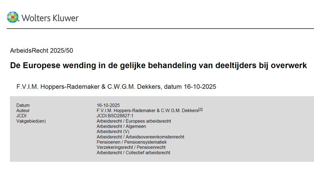 Publicatie: ‘De Europese wending in de gelijke behandeling van deeltijders bij overwerk’ – ArbeidsRecht oktober 2025